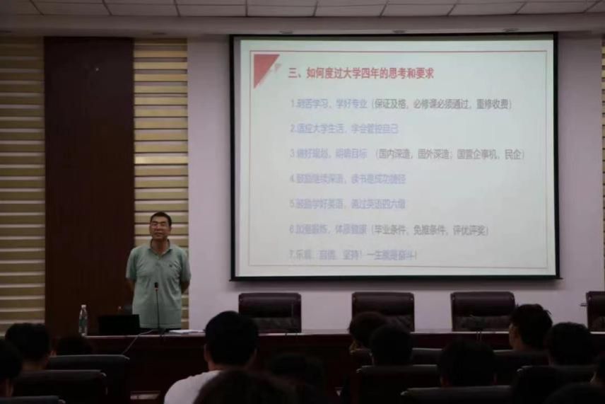 9月8日下午公司经理张光存为同学们进行了一场深刻而精彩的讲座。同时也向各位大一新生介绍了公司的人才培养模式与公司特色专业与特色优势。他勉励同学们要树立远大理想,厚植爱国情怀,练就过硬本领,不断彰显青春风采,贡献青春力量。