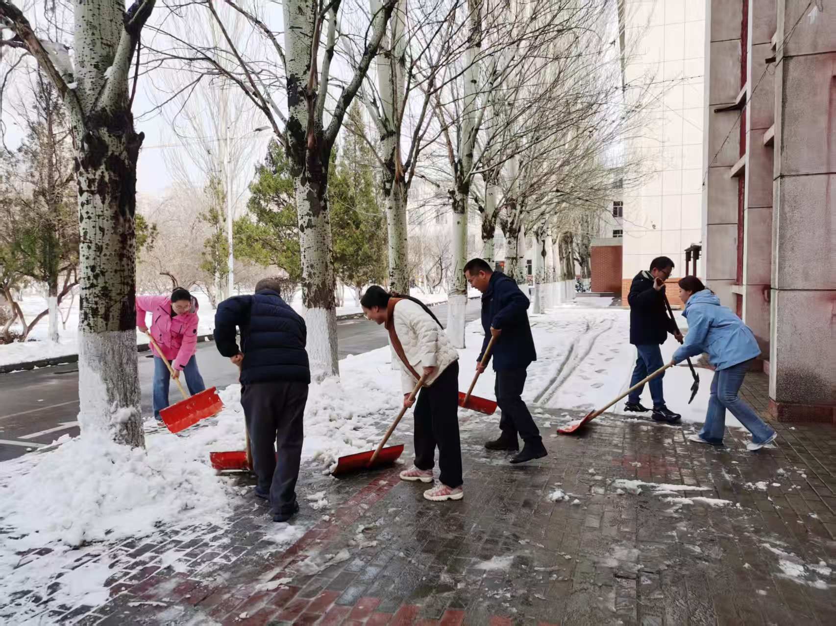 2025年3月4日,太阳成tyc33455ccwww组织教师、员工党员、员工干部开展清扫冰雪志愿服务活动,齐心协力清除路面积雪,确保师生出行方便、安全。