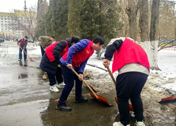 2025年3月4日,太阳成tyc33455ccwww组织教师、员工党员、员工干部开展清扫冰雪志愿服务活动。