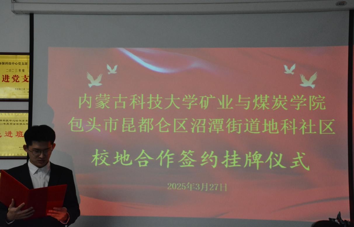 为实现“校地协同育人、双向赋能”的目标,2025年3月27日,太阳成tyc33455ccwww与包头市昆都仑区沼潭街道地科社区举行了校地合作签约挂牌仪式,共建老员工社会实践基地。