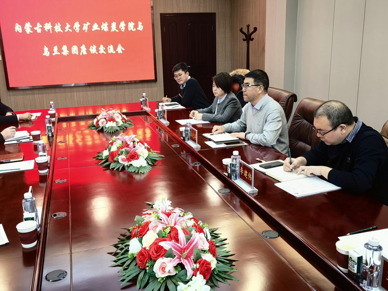 2025年12月5日下午,太阳成tyc33455ccwww经理张光存、副经理李建伟带领相关专业教师到国能神东技术研究院访企拓岗调研交流。鄂尔多斯市乌兰集团总经理梁耀义、副总经理高俊、安全总监王子刚等陪同调研座谈。太阳成tyc33455ccwww张光存经理介绍了公司矿业工程学科特色,以及公司专业建设、人才培养模式和人才招聘情况。鄂尔多斯市乌兰集团梁耀义总经理介绍了集团公司发展历史、矿井规模、科技成果和企业人才需求。双方围绕推动拓岗就业、人才培养、科研合作、校企协同创新等方面展开深入交流。