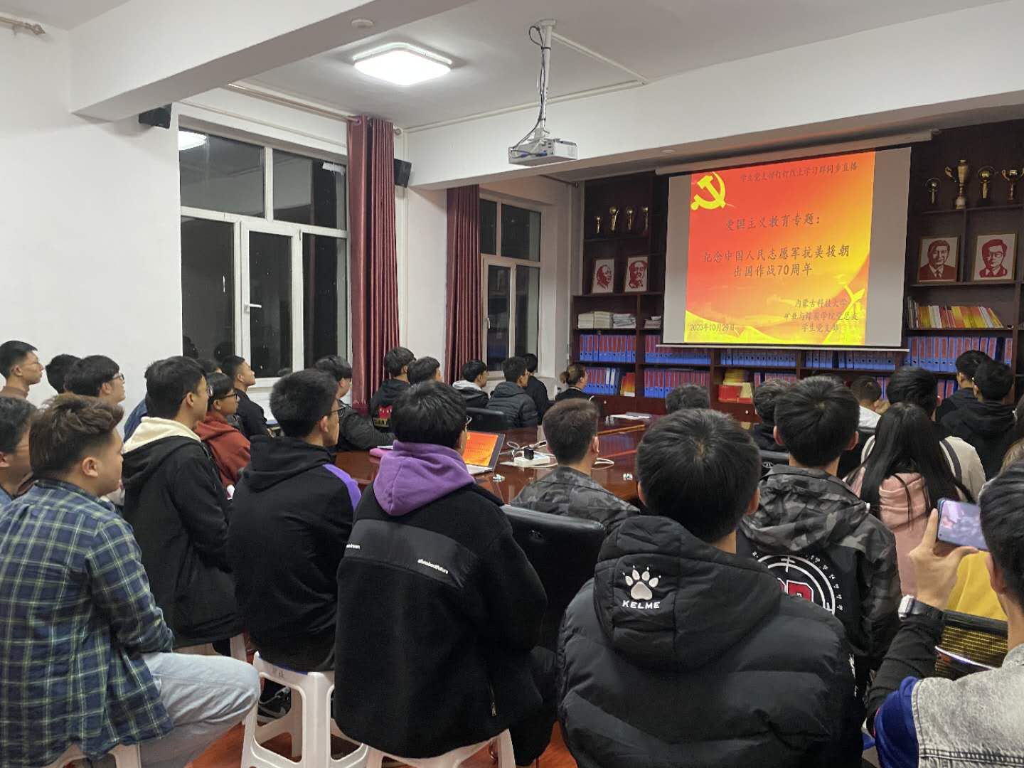 为纪念中国人民志愿军抗美援朝出国作战70周年,矿业与煤炭公司党总支于2020年10月29日晚上19:00,在临曦楼二楼党员之家线上线下同步开展专题理论学习活动。本次学习内容是爱国主义教育专题:观看《纪念中国人民志愿军抗美援朝出国作战70周年》视频。