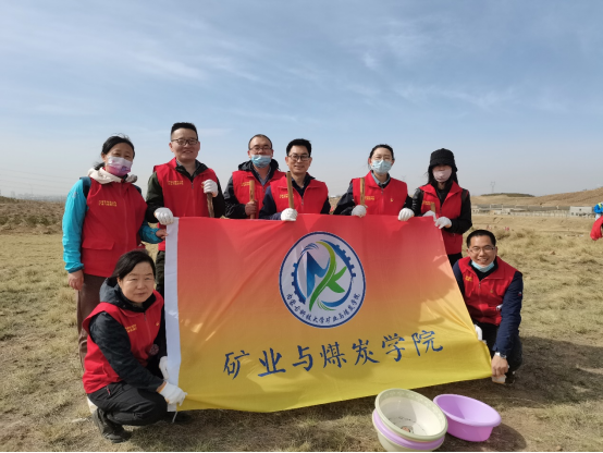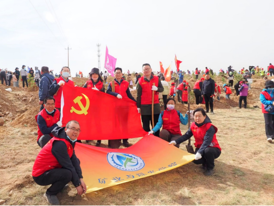2023年4月15日,教工第一支部组织党员在东达沟村参加包头市向日葵义工公益协会举办的“公益植树,绿色成长”活动。